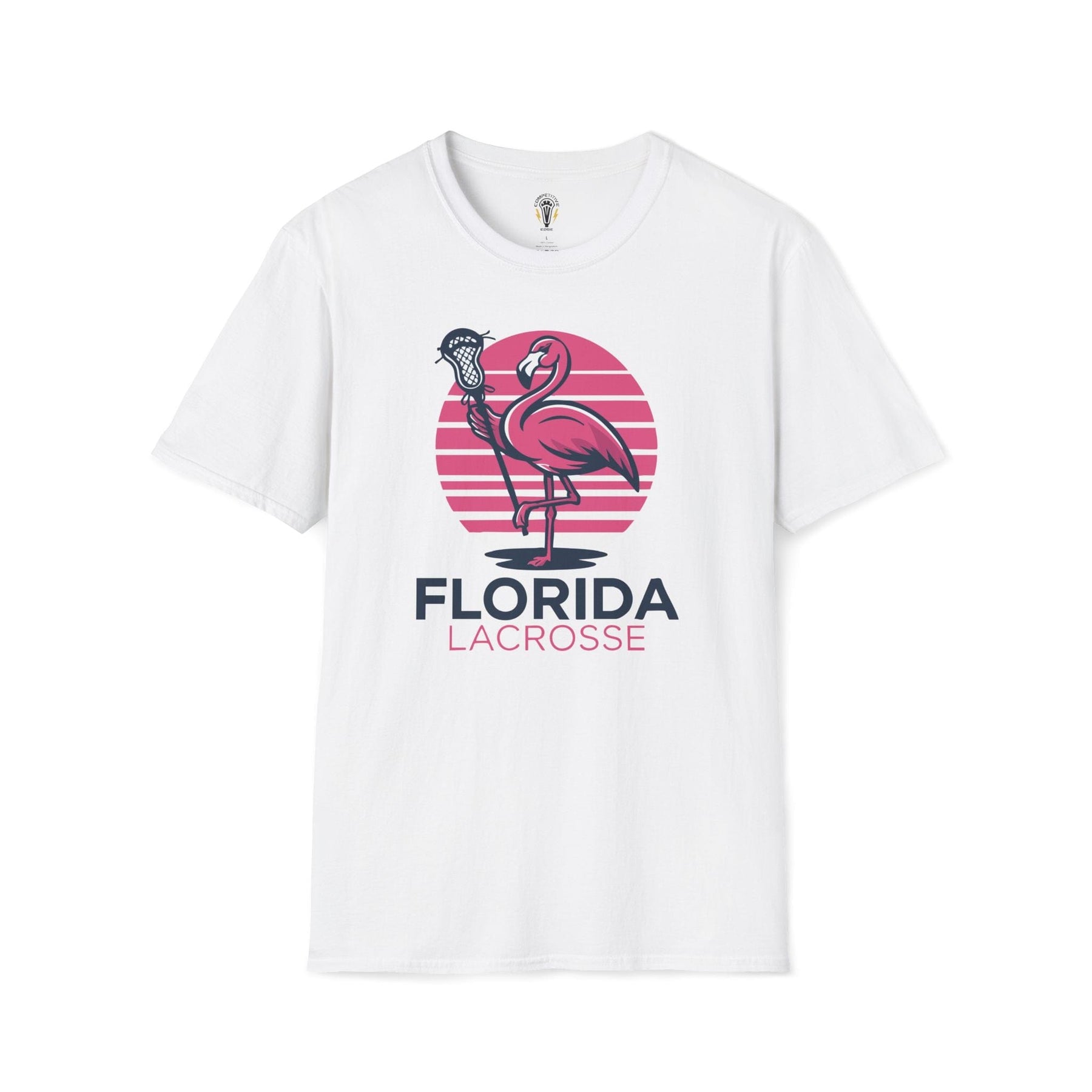 This "Florida Lacrosse" design brings beach vibes to the game with a flamingo holding a lacrosse stick, set against a retro sunset backdrop. Perfect for players who love fast breaks on the field and laid-back beach days off it. Whether you’re dodging defenders or just soaking up the sun, this shirt reps the Sunshine State’s lacrosse scene in style.
