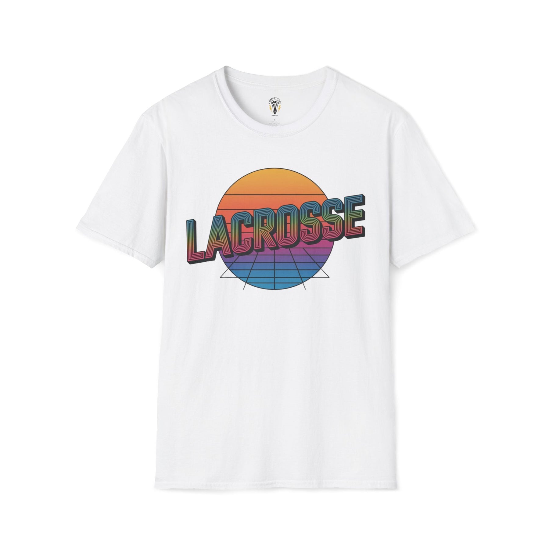 Straight outta the ‘80s and ready to rip net—this retro-inspired design brings serious throwback vibes with bold, blocky “LACROSSE” lettering slammed across a vintage sunset grid. It’s got the neon edge of an old-school arcade and the attitude of a player who doesn’t back down. Perfect for those who bring heat on the field and nostalgia off it.
